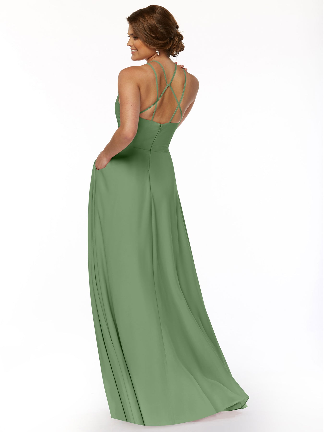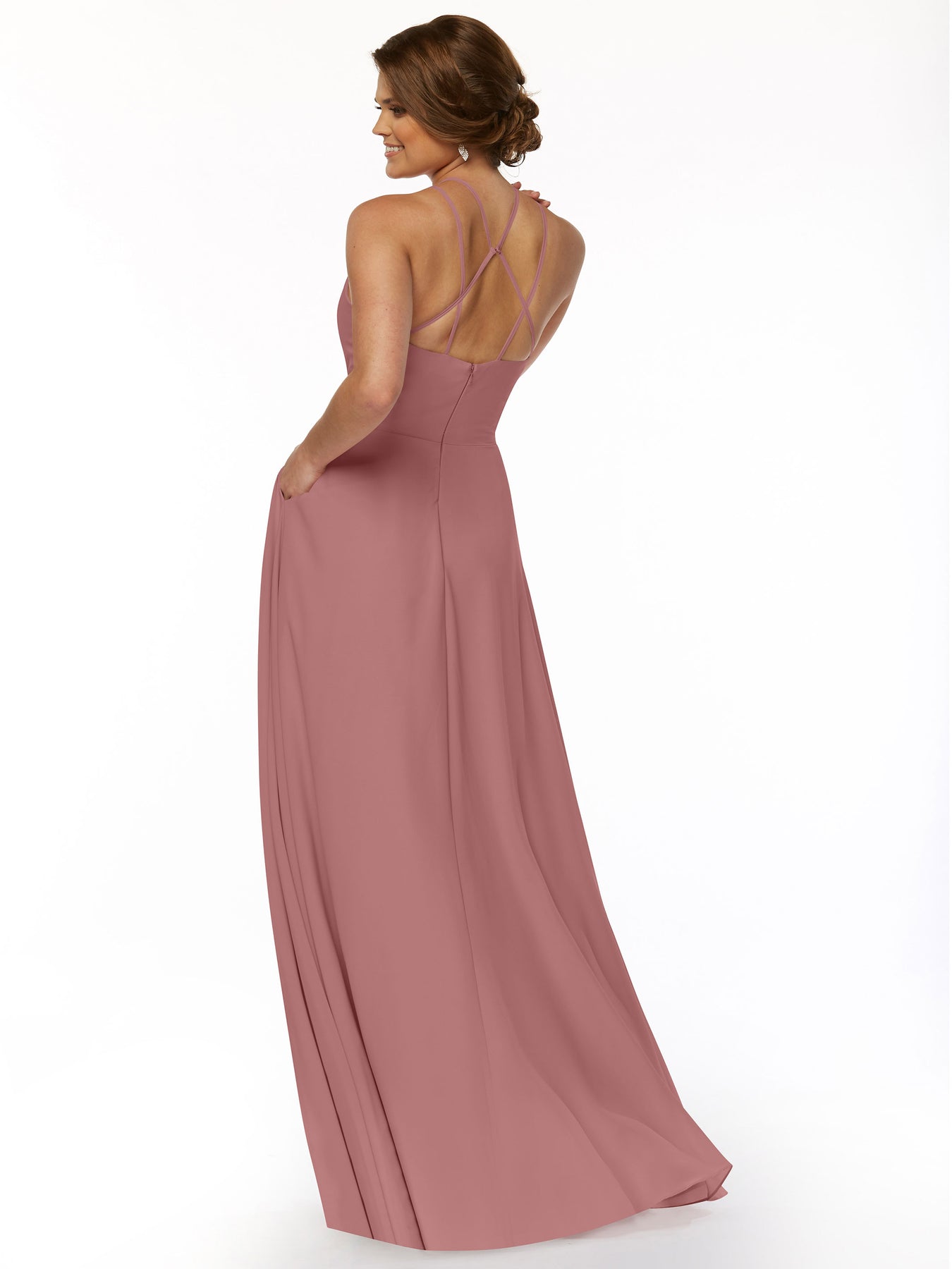 Stretch Chiffon A-Line Bridesmaid Dress with Halter Neckline