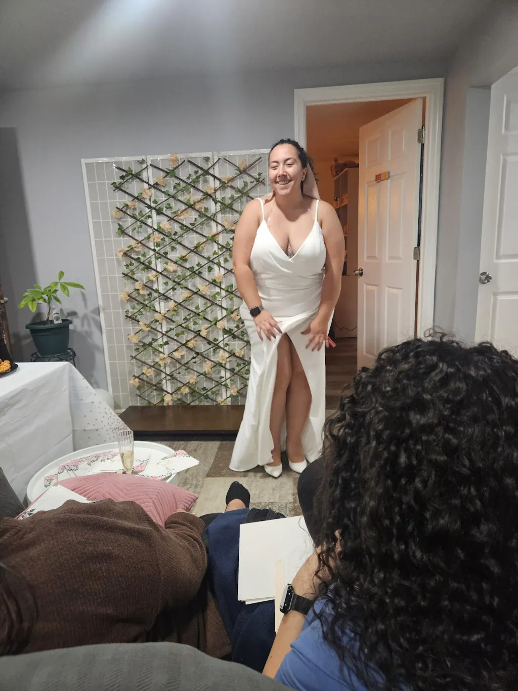 For the most accurate measurements, you should wear undergarments similar to those you intend to wear with your dress. We also highly recommend having someone else help measure you.