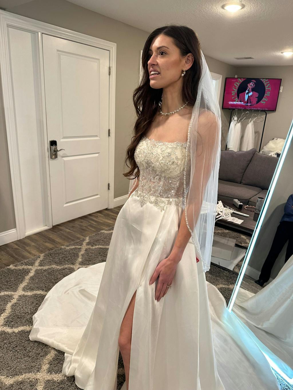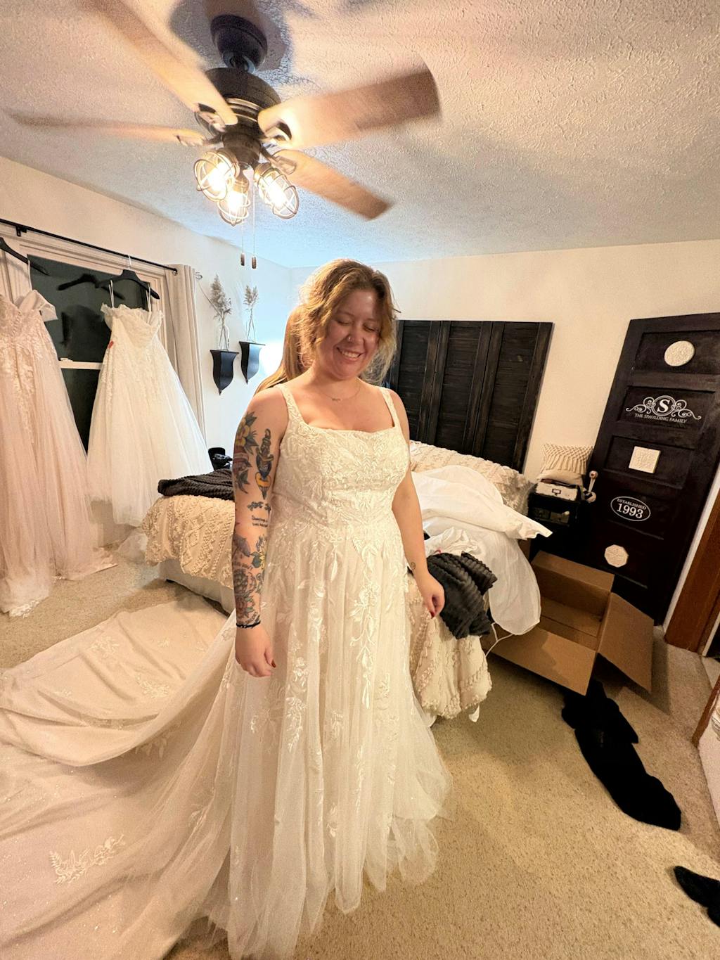 Said yes to the dress! Tried on a sample dress at home and ordered one in my size. I’ll need to have some alterations to it but I’m so happy with my choice