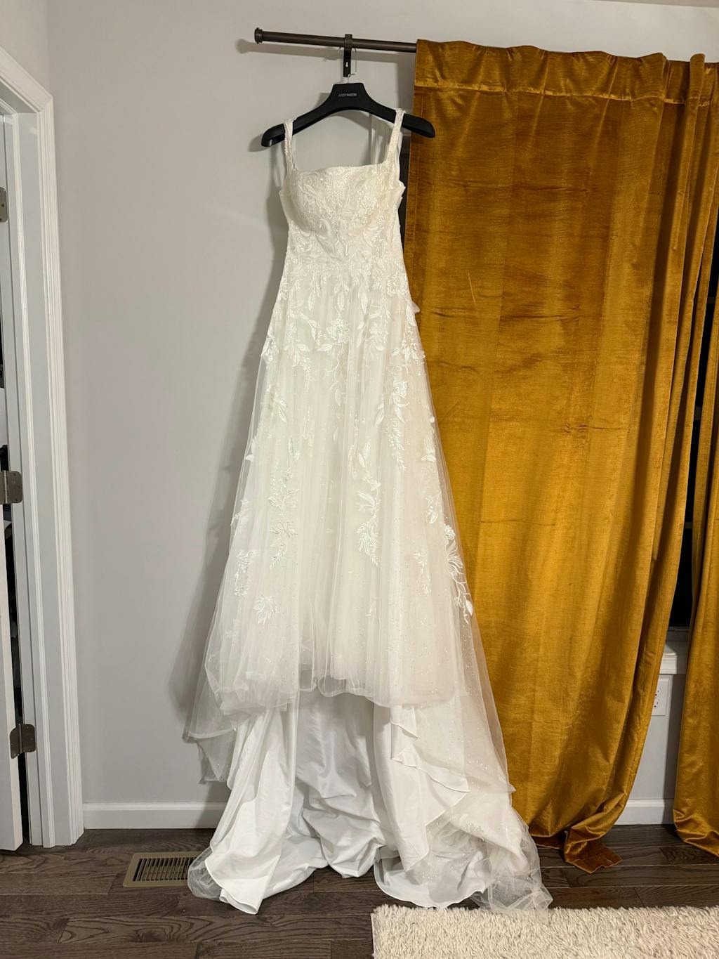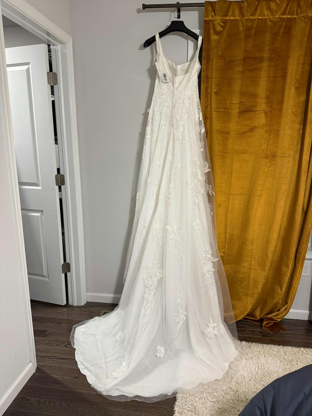 I think this is The One!! The style is classic and elegant, the embroidery is gorgeous, and I’m obsessed with the sparkles. The quality is on par with what I tried on in local shops (or better). The fit is great. It has pockets and the buttons on the back are real. Overall a real 10/10 find.
