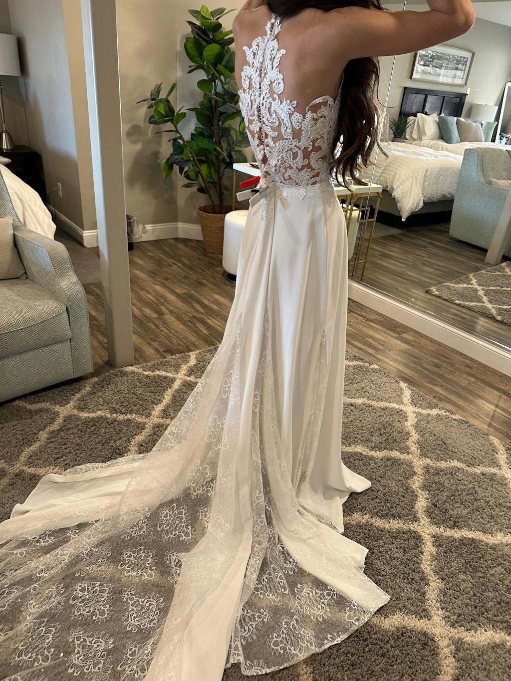 I did a bunch of at-home try on’s from Avery Austin and other companies too. After 8 dresses I put on this one and wow. I knew it was the one. So comfortable, so pretty, modern, chic, and classy with the lace at the same time.