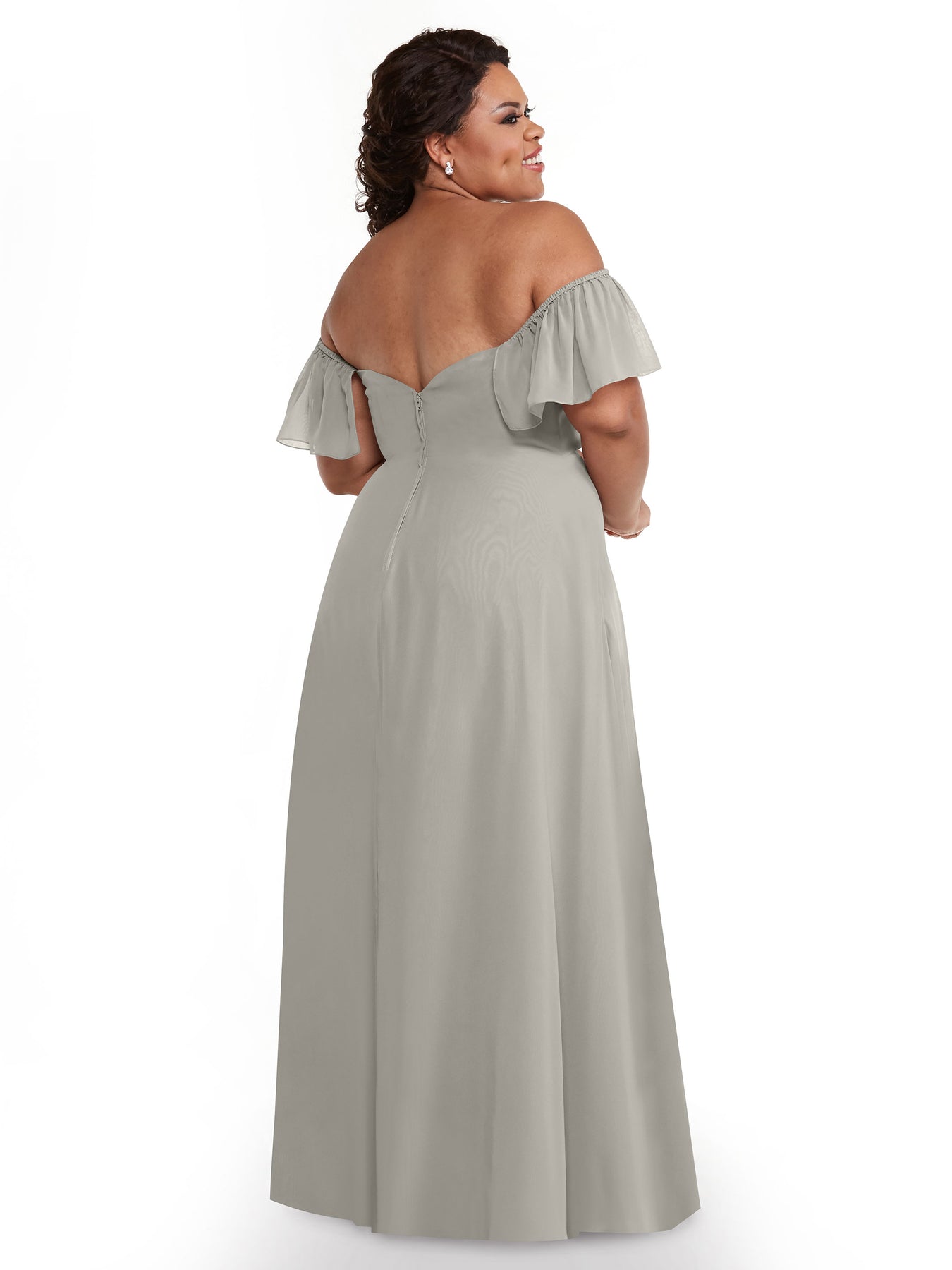 This flowy A-Line dress features matching chiffon off-the-shoulder straps and pockets in the skirt.