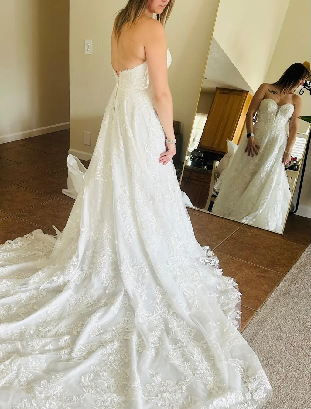 All Try-at-Home sample gown purchases are final sale, sold as is, and are not eligible for returns. Please note that these are try-at-home samples so there may be some degree of wear and tear.